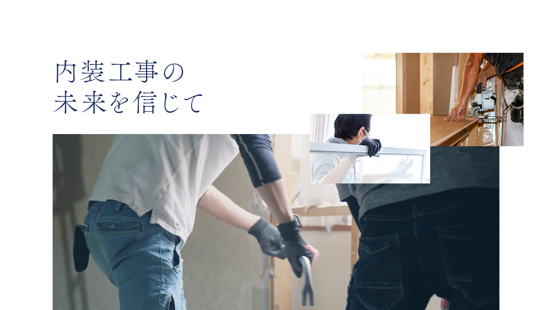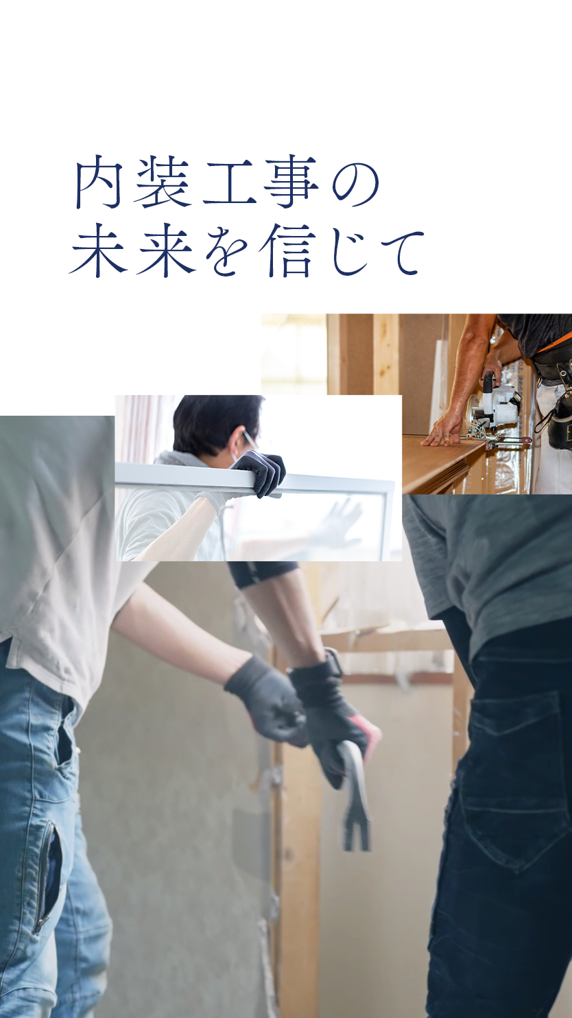 株式会社○○内装では、発注いただく方々、従事される方、すべての方から感謝していただける仕事を行うべく、最大限の努力を惜しまず業務にあたっております。